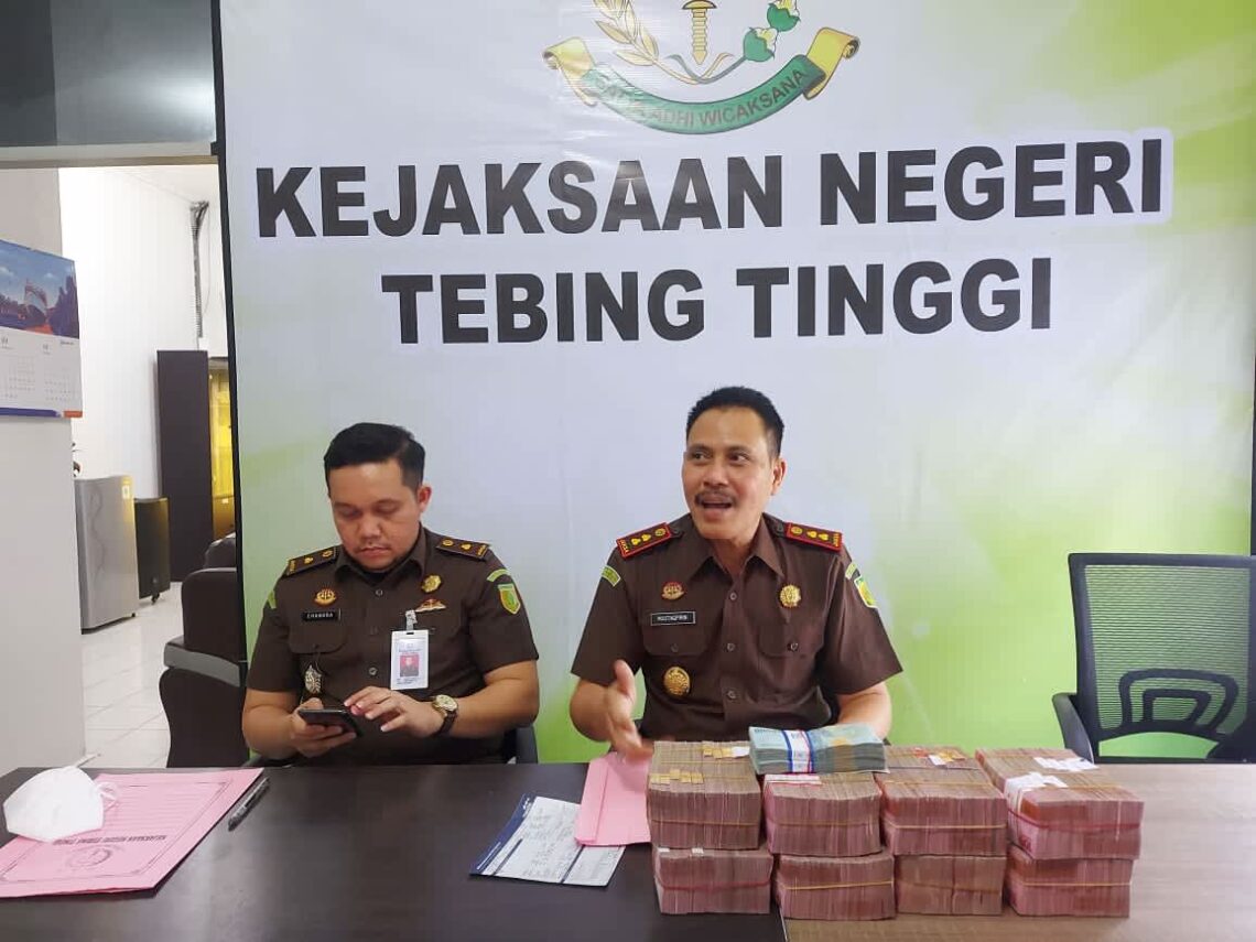 Kepala Kejari Tebingtinggi Mustaqpirin didampingi Kasi Pidsus Chandra Syahputra mengatakan, dari apa yang telah diupayakan Tim Penyidik untuk proses penyelamatan keuangan negara, pada hari ini sudah berhasil kita sita uang tunai Rp810 juta dari para tersangka.
