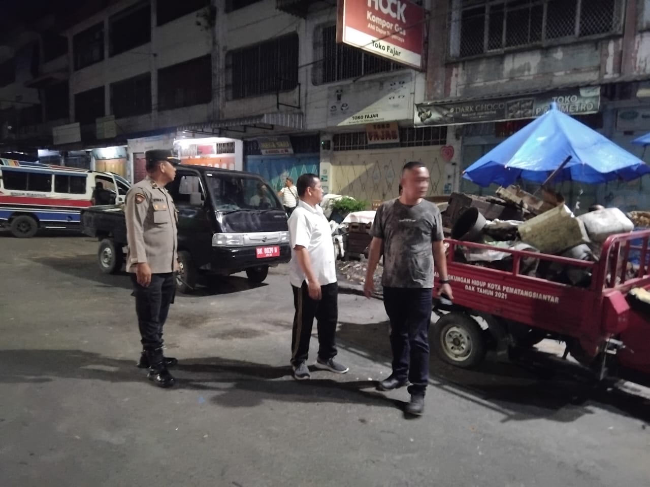 Pematangsiantar – Konstruktif.id | Pelaksana harian (Plh) Kaposlek Siantar Barat IPDA Ganda Rezeki Sinaga SH bersama para personil melaksanakan monitoring kegiatan relokasi para pedagang eks Gedung IV Pasar Horas di Jalan Merdeka Bawah Kelurahan Dwikora Kecamatan Siantar Barat Kota Pematangsiantar, pada Kamis 2 Oktober 2025 pagi pukul : 20.00 Wib.