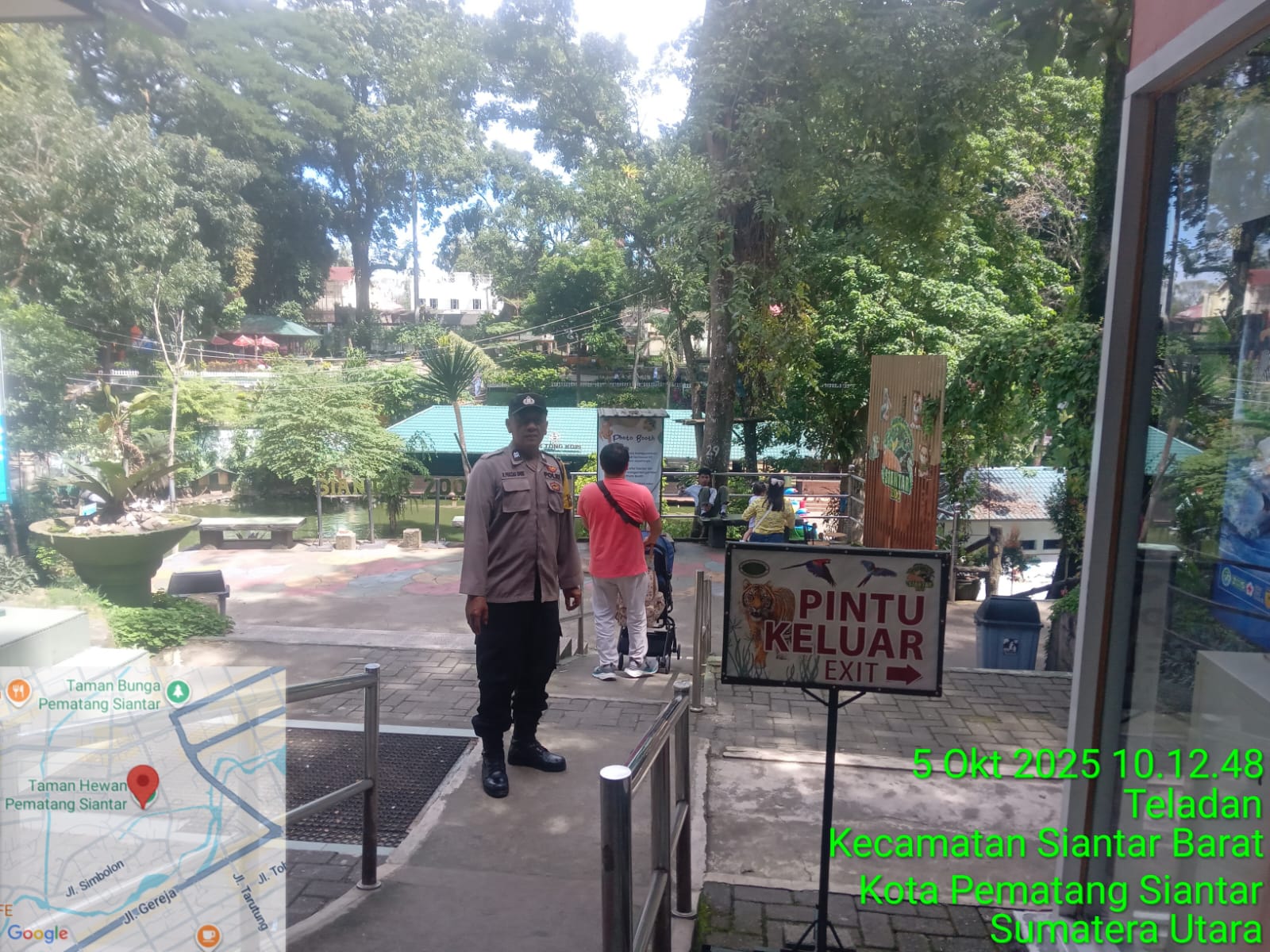 Pematangsiantar – Konstruktif.id | Polsek Siantar Barat Polres Pematangsiantar melalui Piket Bhabinkamtibmas AIPTU RP. Damanik dan BRIPKA Agus R menggelar kegiatan patroli rutin di tempat wisata di wilayah hukum Polsek Siantar Barat, pada Minggu 5 Oktober 2025 pagi pukul : 10.00 Wib.