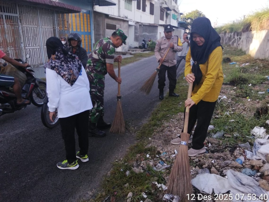 Pematangsiantar – Konstruktif.id | Polsek Siantar Barat Polres Pematangsiantar melalui Bhabinkamtibmas AIPTU Alexander dan AIPTU Wellinton Nababan mengikuti kegiatan gotong royong bersama di Jalan Jintar Saragih Kelurahan Dwikora Kecamatan Siantar Barat Kota Pematangsiantar, Jumat 12 Desember 2025 pagi pukul : 07.30 Wib.