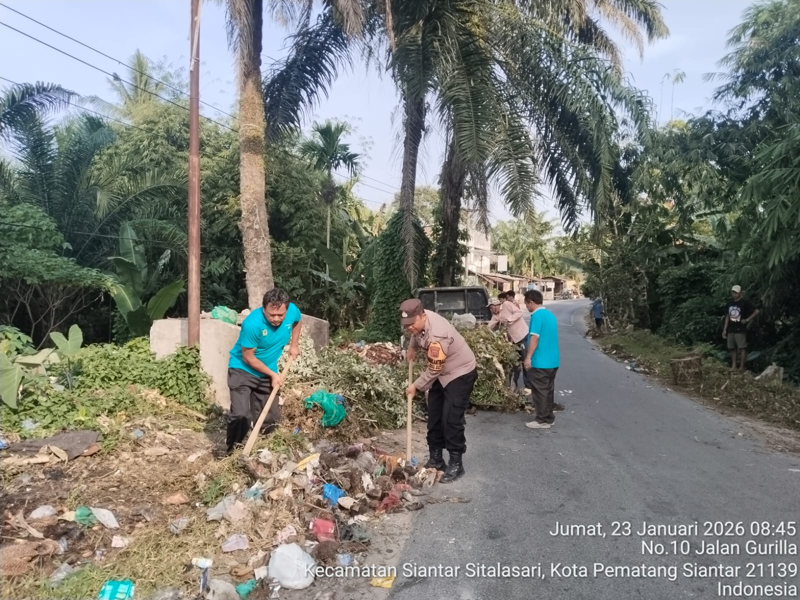 Pematangsiantar – Konstruktif.id | Polsek Siantar Martoba Polres Pematangsiantar melalui Bhabinkamtibmas Kelurahan Bah Sorma AIPDA Fadlan Fahmi mengikuti gotong royong massal di Jalan Pisang Kipas Kelurahan Bah Sorma Kecamatan Siantar Sitalasari Kota Pematangsiantar, pada hari Jumat 23 Januari 2026 pagi pukul : 08.15 Wib.