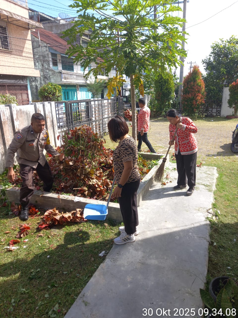 Pematangsiantar – Konstruktif.id | Polsek Siantar Selatan Polres Pematangsiantar melalui Bhabinkamtibmas Kelurahan Simalungun AIPTU Untung JF. Nainggolan mengikuti kegiatan gotong gotong royong bersama diseputaran Kantor Kelurahan Simalungun, jln. Sabang Merauke, Kecamatan Sianțar Selatan Kota Pematangsiantar, pada hari Kamis 30 Oktober 2025 pagi sekira pukul 09:30 Wib.