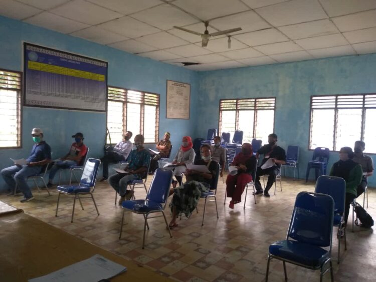 Bandar | Konstruktif – 16 Pengawas Kelurahan/Desa (PKD) Kecamatan Bandar mengikuti bimbingan teknis (Bimtek) verifikasi faktual calon perseorangan di gedung Arungguan Kecamatan Bandar, Kabupaten Simalungun, Rabu (24/06/2020).