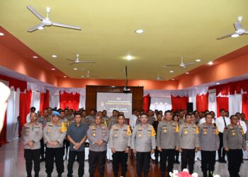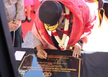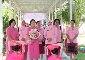 Pematangsiantar - Konstruktif .id | Ketua Bhayangkari Cabang Kota Pematangsianțar Ny. Sandra Yogen bersama pengurus menerima kunjungan kerja (Kunker) Ketua Bhayangkari Daerah Sumatera Utara (Sumut) Ny. Mona Whisnu Hermawan di Lapangan Aspol...