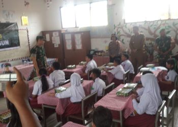Pematangsiantar - Konstruktif.id | Kapolsek Sianțar Utara AKP Jahrona Sinaga SH menghadiri kegiatan pemberian Makanan Sehat Bergizi yang diselenggarakan Kodim 0207/Simalungun bertempat di SD Negeri 124395 Jalan Nagur Kelurahan Martoba Kecamatan Sianțar...