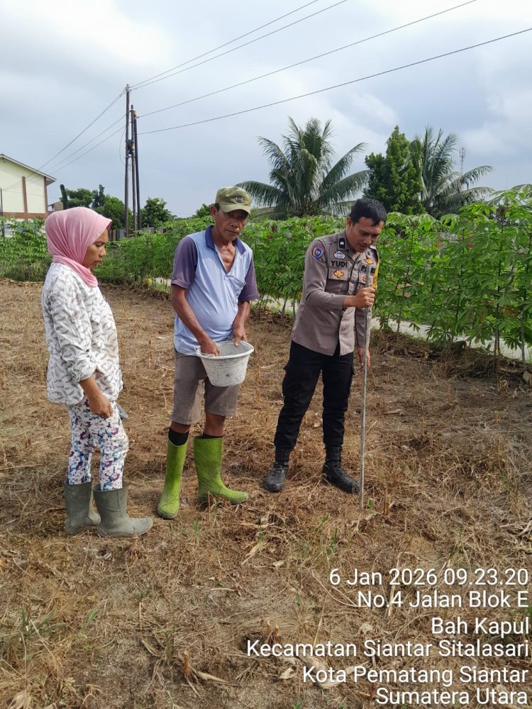 Pematangsiantar – Konstruktif.id | Polsek Siantar Utara Polres Pematangsiantar melalui Bhabinkamtibmas Kelurahan Baru AIPDA Yudi Patra sambangi lahan warga binaan Bapak Manurung di Jalan Haranggaol Kelurahan Bah Kapul Kecamatan Siantar Sitalasari, Kota Pematangsiantar, pada hari Senin 5 Januari 2026 pagi sekira pukul 09:25 Wib.