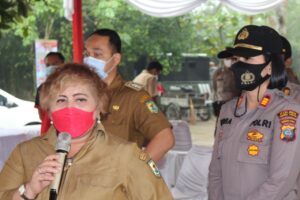 “Kita harus tetap melaksanakan Prokes 5M walaupun sudah mendapat vaksinasi. Untuk memutus mata rantai COVID-19 harus ada kesadaran masyarakat melaksanakan Prokes 5M (memakai masker, mencuci tangan, menjaga jarak, menghindari kerumunan dan mengurangi mobilitas), ” tegas AKP Dhoraria Simanjuntak. (Samsudin Silitonga).