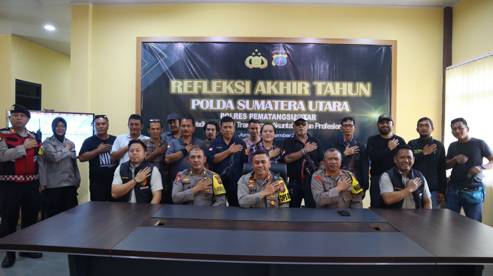Kapolres Pematang Siantar AKBP Yogen Heroes Baruno, SH, S.I.K menyampaikan hari ini kita melaksanakan Refleksi Akhir Tahun 2024 dengan memaparkan sejumlah informasi dan capaian kinerja Polres Pematangsiantar sepanjang tahun 2024, mulai dari capaian di bidang Penegakkan Hukum, Pencegahan, Pembinaan,dan Kerjasama.