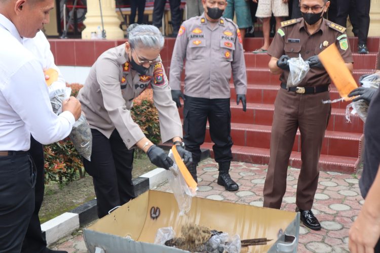 “Jumlah barang bukti ganja dimusnahkan setelah disisihkan untuk pemeriksaan di Laboratorium Forensik sebanyak 1.906,85 gram. Jumlah barang bukti ganja ini berhasil terselamatkan 5.720 jiwa manusia,” Ujar AKBP Sah Udur.