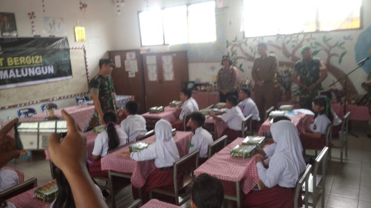 Pematangsiantar – Konstruktif.id | Kapolsek Sianțar Utara AKP Jahrona Sinaga SH menghadiri kegiatan pemberian Makanan Sehat Bergizi yang diselenggarakan Kodim 0207/Simalungun bertempat di SD Negeri 124395 Jalan Nagur Kelurahan Martoba Kecamatan Sianțar Utara Kota Pematangsianțar pada Senin (29/9/2025) pagi sekira pukul 10.00 Wib.