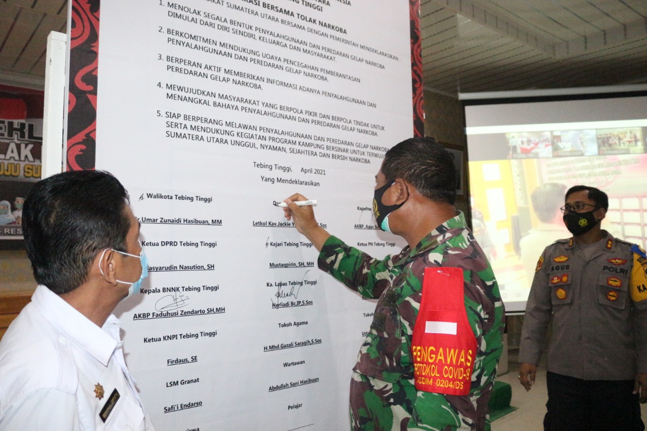 Deklarasi dihadiri Kapolres Tebingtinggi AKBP Agus Sugiyarso SIK bersama Wakapolres Kompol Sarponi, Para Kabag, Kasat dan Kapolsek, Sekda Muhammad Dimiyathi, DPRD, Kepala BNNK AKBP Faduhusi Zendrato, Danramil 13 Kapten Inf Budiono, Kalapas Tebingtinggi dan Pengurus Organisasi Elemen Masyarakat.