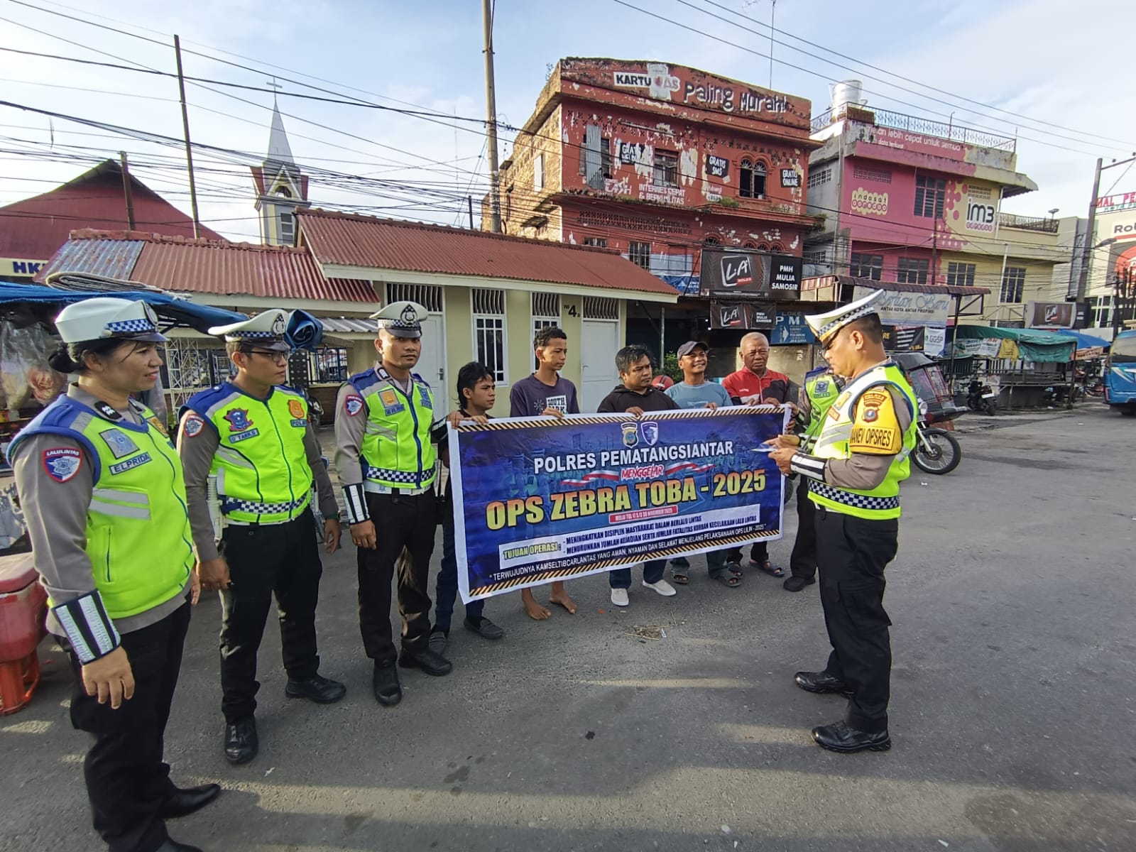 Ops Zebra Toba 2025, Sat Lantas Polres Pematangsiantar Sosialisasi di Megaland Jalan Sangnawaluh
