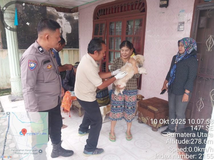Pematangsiantar – Konstruktif.id | Polsek Siantar Martoba Polres Pematangsiantar melalui Bhabinkamtibmas Kelurahan Tambun Nabolon AIPTU Jonson Hutahuruk bersama Lurah dampingi pelaksanaan vaksinasi rabies hewan peliharaan masyarakat di jalan Tambun Timur Kelurahan Tambun Nabolon Kecamatan Siantar Martoba Kota Pematangsiantar, pada Kamis 9 Oktober 2025 pagi sekira pukul 09.00 Wib.