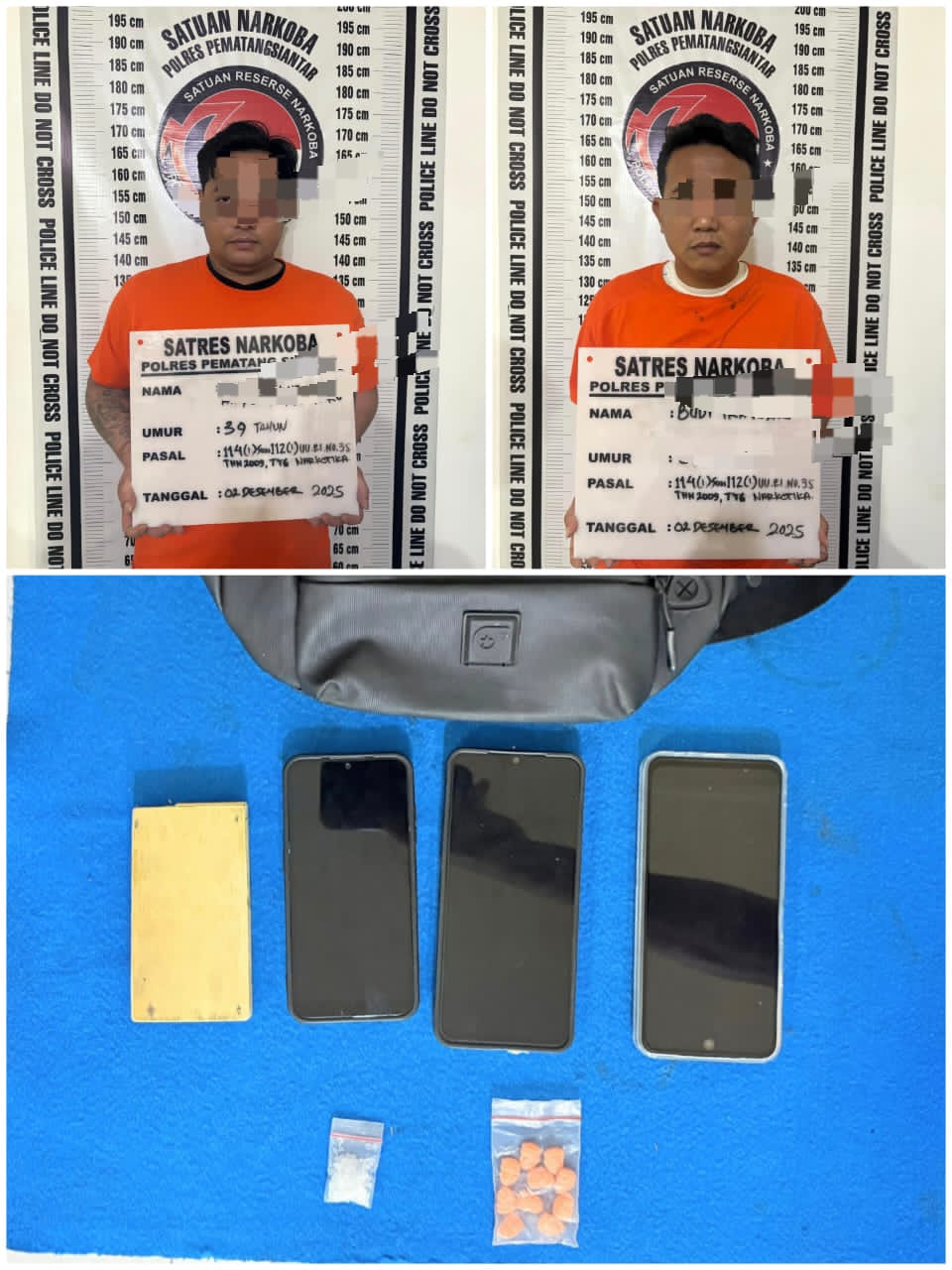 Setelah dilakukan penyelidikan, pada Selasa 2 Desember 2025 siang sekira pukul 14.00 WIB Tim Opsnal Sat Resnarkoba dipimpin Kanit 1 IPDA Warman Siallagan S.H menangkap kedua tersangka sedang mengendarai sepedamotor Honda Scoopy warna biru BK 6768 TAW.
