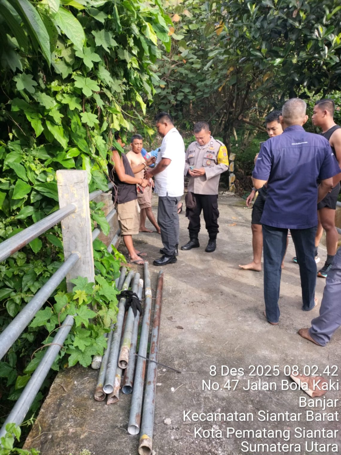 Pematangsiantar – Konstruktif.id | Tindaklanjut laporan masyarakat (Tinjut Lapmas) 110, Polres Pematangsiantar melalui personil piket Polsek Siantar Barat gerak cepat amankan seorang terduga pelaku pencurian besi jembatan yang terletak di Jalan Bila Kaki Gang Setia kawan Kampung Banjar Kelurahan Banjar Kecamatan Siantar Barat Kota Pematangsiantar, Senin 8 Desember 2025 pagi sekira pukul 08.30 Wib.