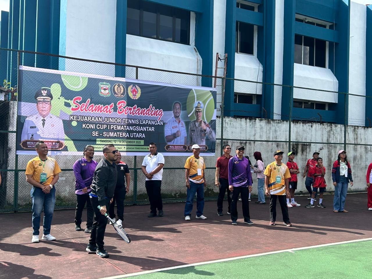 Pematangsiantar – Konstruktif.id | Wakapolres Pematangsiantar KOMPOL Budiono Saputro, SH. MH mewakili Kapolres Pematangsiantar menghadiri Pembukaan Kejuaraan Junior Tenis Lapangan Antar Pelajar se Sumatera Utara (Sumut) yang berlangsung di Lapangan Tenis 022/Pantai Timur (PT), Jum’at 12 Desember 2025 pagi pukul : 08.30 Wib.
