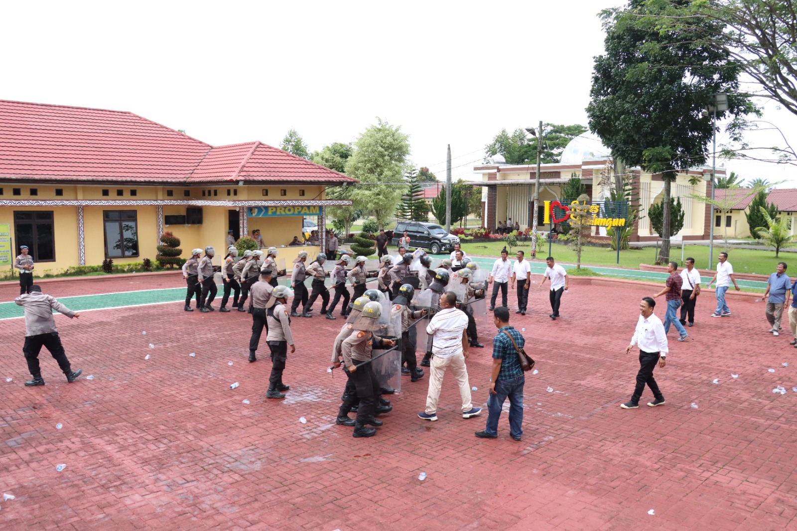 Selanjutnya Apel Kesiap siagaan dilanjutkan dengan Simulasi Pengamanan Kontijensi Pilpanag 2023 dimana diasumsikan situasi kontijensi pada hari kamis tanggal 16 Maret 2023 sekira pkl. 10.00 wib, masaa pengunjuk rasa dari forum Masyarakat Anti Money Politik (FMAMPP) melakukan unjuk rasa ke Kantor BPN-PM dikarenakan diduga salah satu calon pangulu telah melakukan Money Politik, dengan kesiap siagaan personel Polres Simalungun dapat menguasai situasi serta mengamankan seluruh aset dan anggota serta kantor Sekretariat FMAMP dan dinas BPN PM.