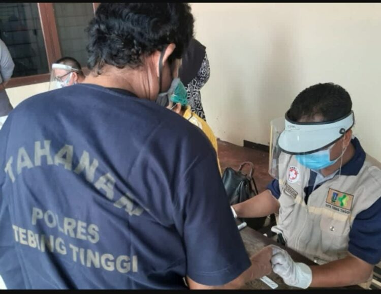 Tebingtinggi | Konstruktif.id – Polres Tebingtinggi melaksanakan pemeriksaan uji cepat Rapid Test Covid-19, terhadap 20 tahanan, di Mapolres Jalan Pahlawan Jumat (03/07/2020).