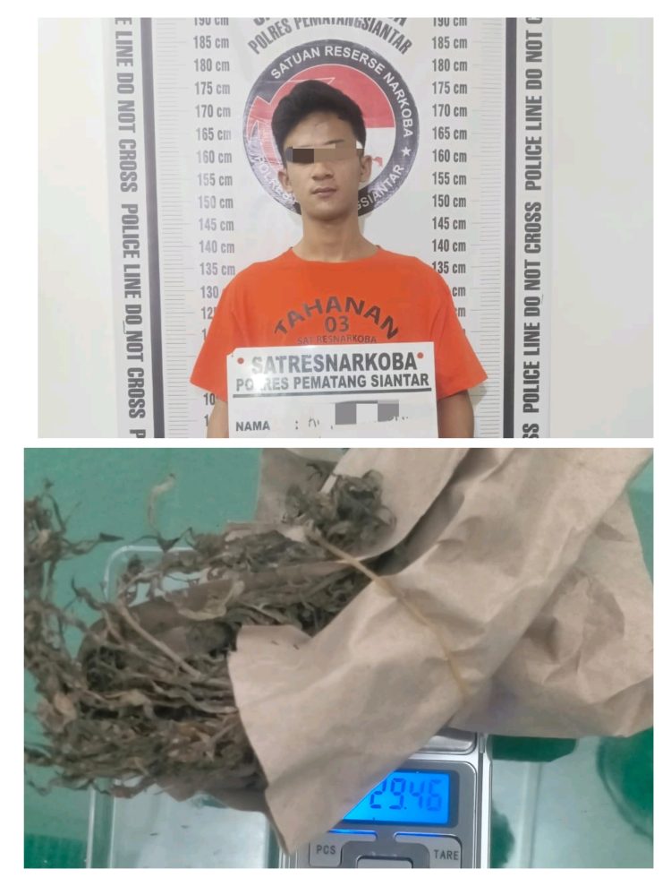 Pematangsiantar – Konstruktif.id | Satuan Reserse Narkoba Polres Pematangsiantar menangkap AS (18) warga Jalan Tangki Kelurahan Nagapita Kecamatan Siantar Martoba Kota Pematangsiantar memiliki narkotika jenis ganja berat bruto 29,46 gram di Jalan Pendidikan Kelurahan Sigulang – gulang Kecamatan Siantar Utara Kota Pematangsiantar, pada Jumat 3 Oktober 2025 dini hari sekira pukul 01.00 WIB.