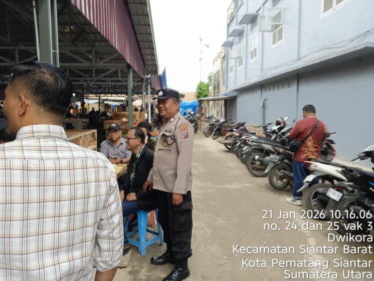 Pematangsiantar – Konstruktif.id | Polsek Siantar Barat Polres Pematangsiantar melalui Kasub Sektor Pasar Horas AIPTU Edi Syahputra SH melaksanakan monitoring dan pendampingan pelaksanasan sosialisasi cara pembayaran distribusi melalui QRIS kepada para pedagang Eks Gedung IV, Jalan Merdeka Kelurahan Dwikora Kecamatan Siantar Barat Kota Pematangsiantar, pada hari Rabu 21 Januari 2026 siang sekira pukul 12:00 Wib.