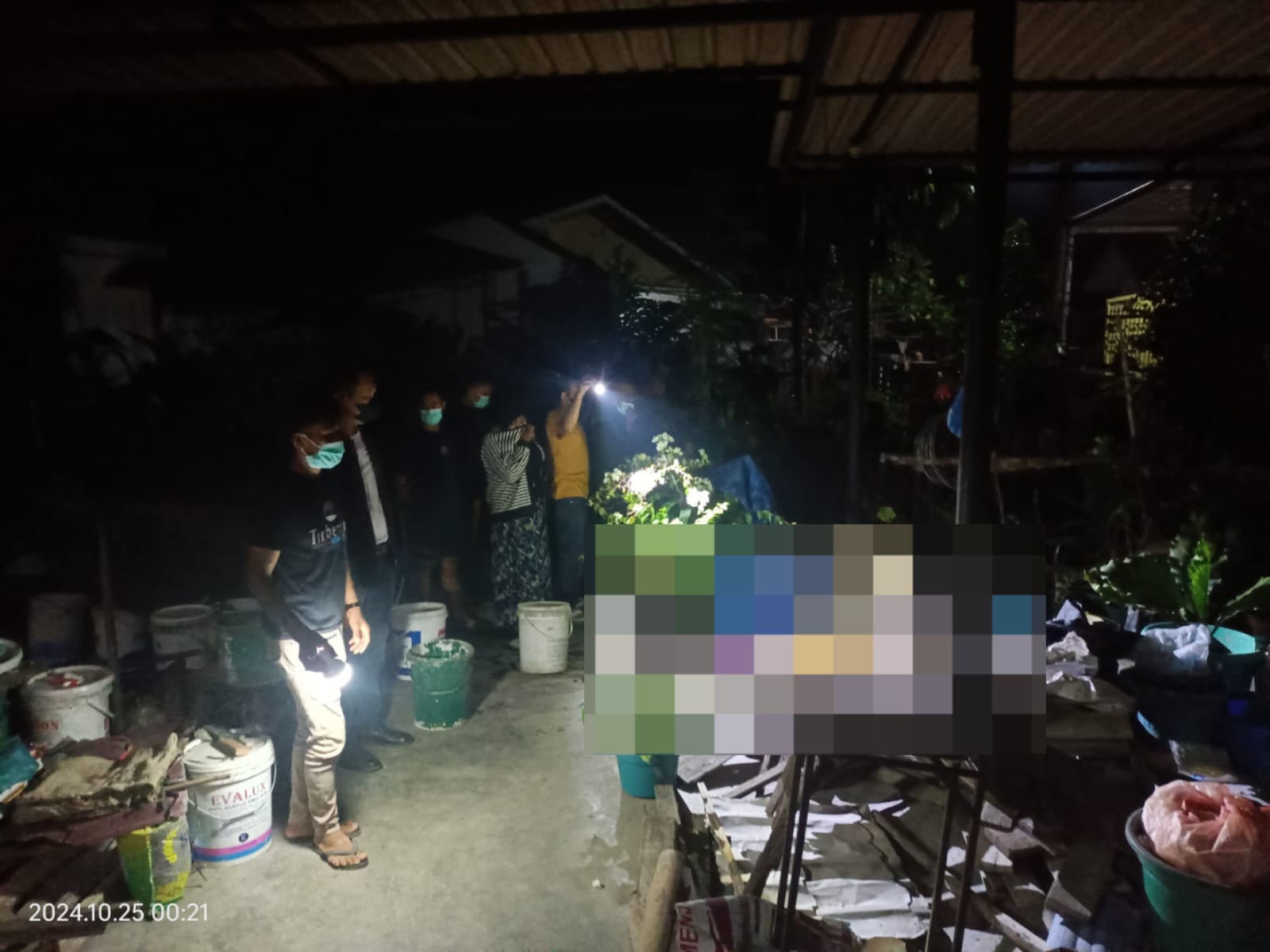 Selanjutnya kedua saksi masuk untuk mengecek kedalam. Namun saat di halaman rumah kedua saksi melihat korban sudah dalam keadaan tergeletak dan kondisi meninggal dunia di depan rumahnya.