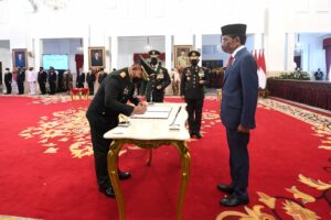 Dalam pelantikan tersebut, Presiden Jokowi mengambil sumpah jabatan Dudung Abdurachman sebagai KSAD.