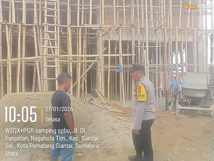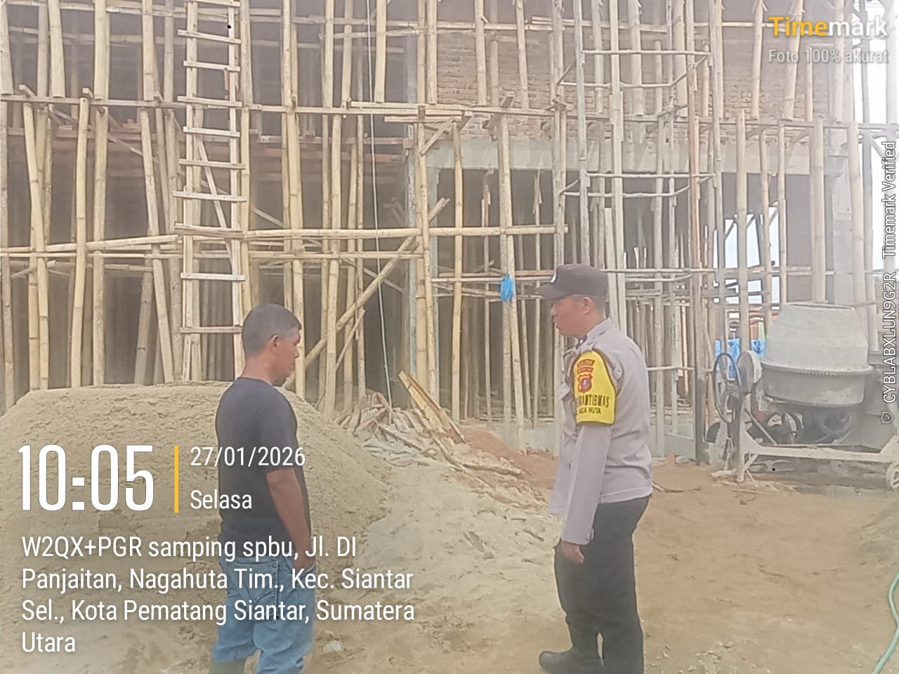 Pematangsiantar – Konstruktif.id | Polsek Siantar Marihat Polres Pematangsiantar melalui Bhabinkamtibmas Kelurahan Suka Maju AIPDA Adilman Manalu sambangi pekerja bangunan di Jalan D.I. Panjaitan Kelurahan Nagahuta Kecamatan Siantar Marimbun Kota Pematangsiantar, pada hari Selasa 27 Januari 2026 pagi pukul : 10.00 Wib.