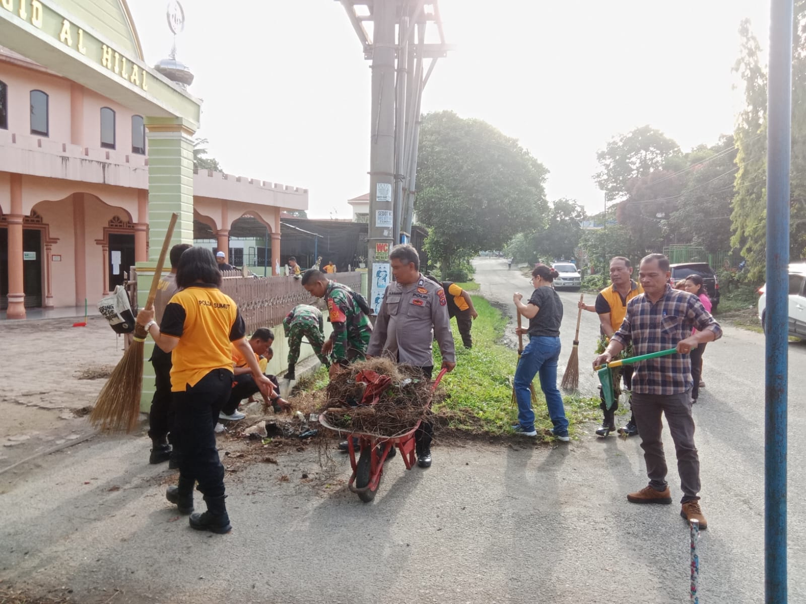 Selain kebersihan, Kapolsek juga memberikan bantuan alat – alat kebersihan kepada pengurus Mesjid Al Hilal.