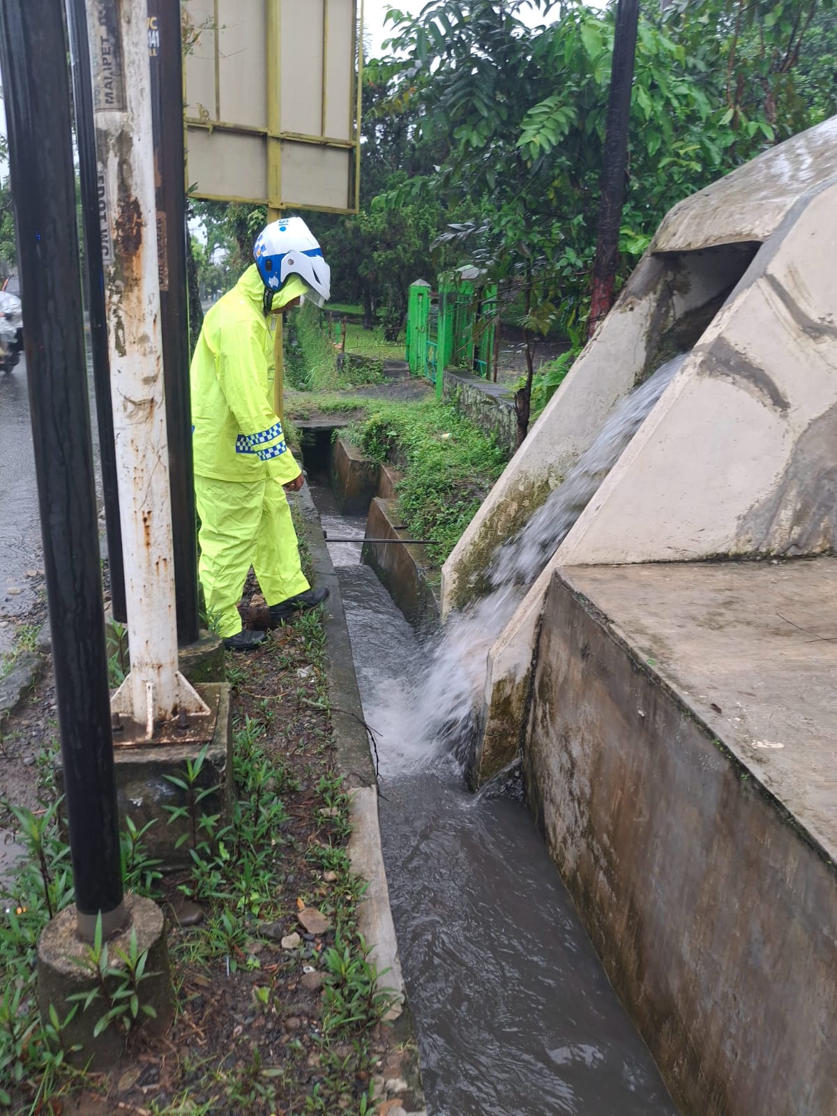 Sat Lantas Polres Pematangsiantar Monitoring Situasi Arus Lalin Macet dan Banjir