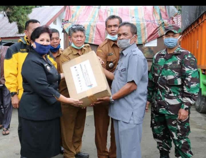 Bantuan Paket Sembako dari Provinsi Sumatera Utara di Salurkan oleh Wakil Bupati Karo Cory S Sebayang bersama anggota DPRD Kabupaten Karo Mardi Barus dan Firman Firdaus Sitepu bagi terdampak Covid-19 di Kecamatan Barus Jahe Bantuan Jaring Pengaman Sosial (JPS) dari Provinsi Sumut tersebut berlokasi di Halaman Kantor Camat Barus Jahe , Rabu (20/05/2020).