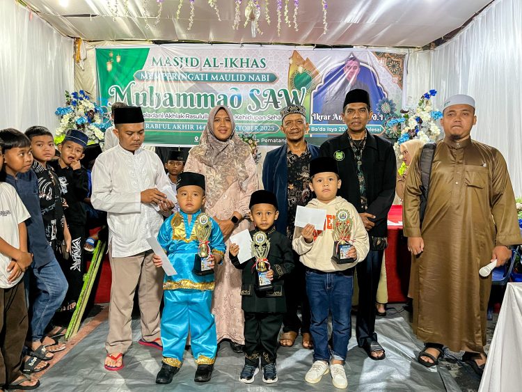 Pematangsiantar – Konstruktif.id | Meski hujan deras, Wakil Wali Kota Pematangsiantar Herlina tetap menghadiri peringatan Maulid Nabi Muhammad SAW 1447 H di Masjid Al Ikhlas, Jalan Tangki Kelurahan Naga Pita Kecamatan Siantar Martoba, Sabtu (11/10/2025) malam. Jamaah Masjid Al Ikhlas pun antusias mengikuti kegiatan Maulid Nabi Muhammad. Berbagai penampilan anak-anak berbusana Muslim diiringi musik Islami menjadi penyemarak acara tersebut.