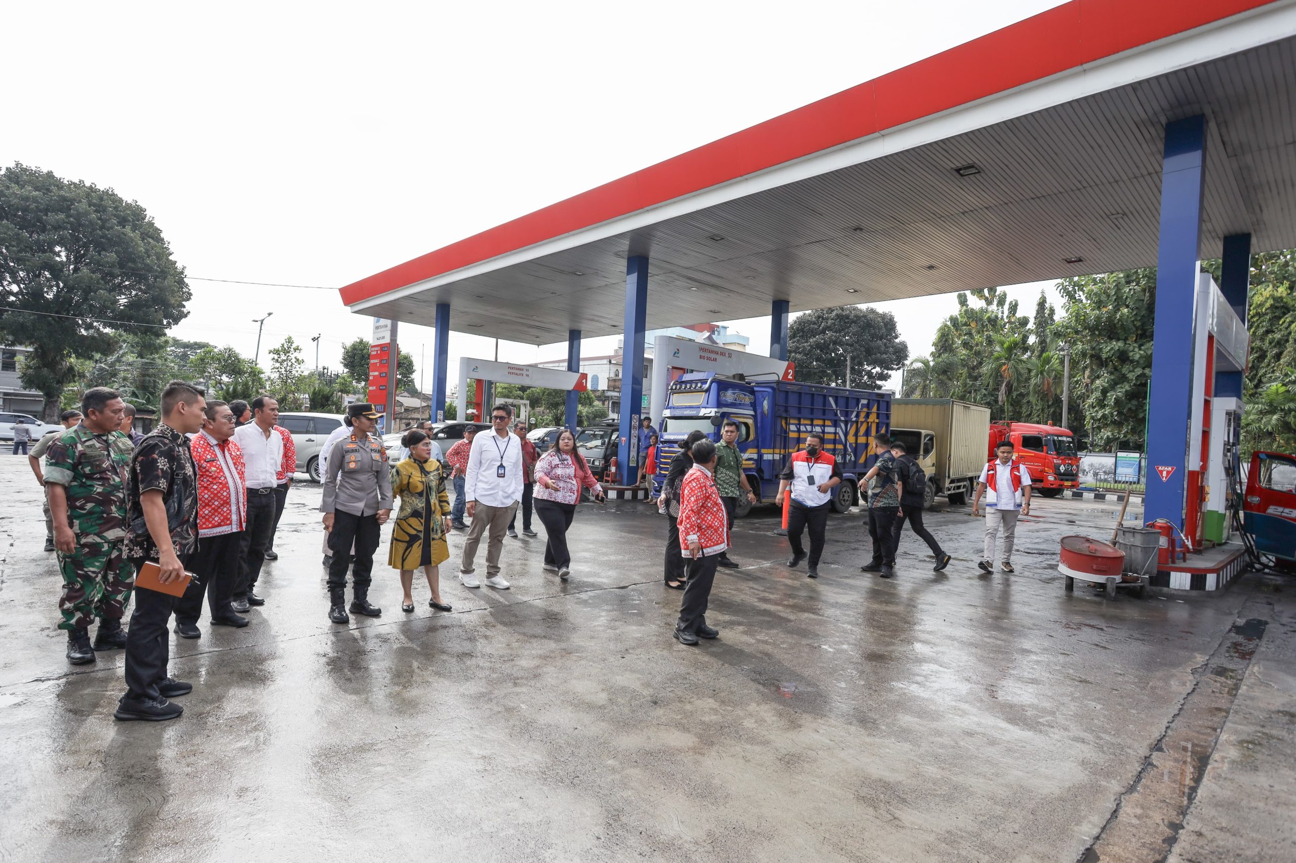 Wali Kota Pematangsiantar Wesly Silalahi SH MKn didampingi Ketua TP PKK Ny Liswati Wesly Silalahi dan bersama Forkopimda mengunjungi SPBU di Jalan Ahmad Yani