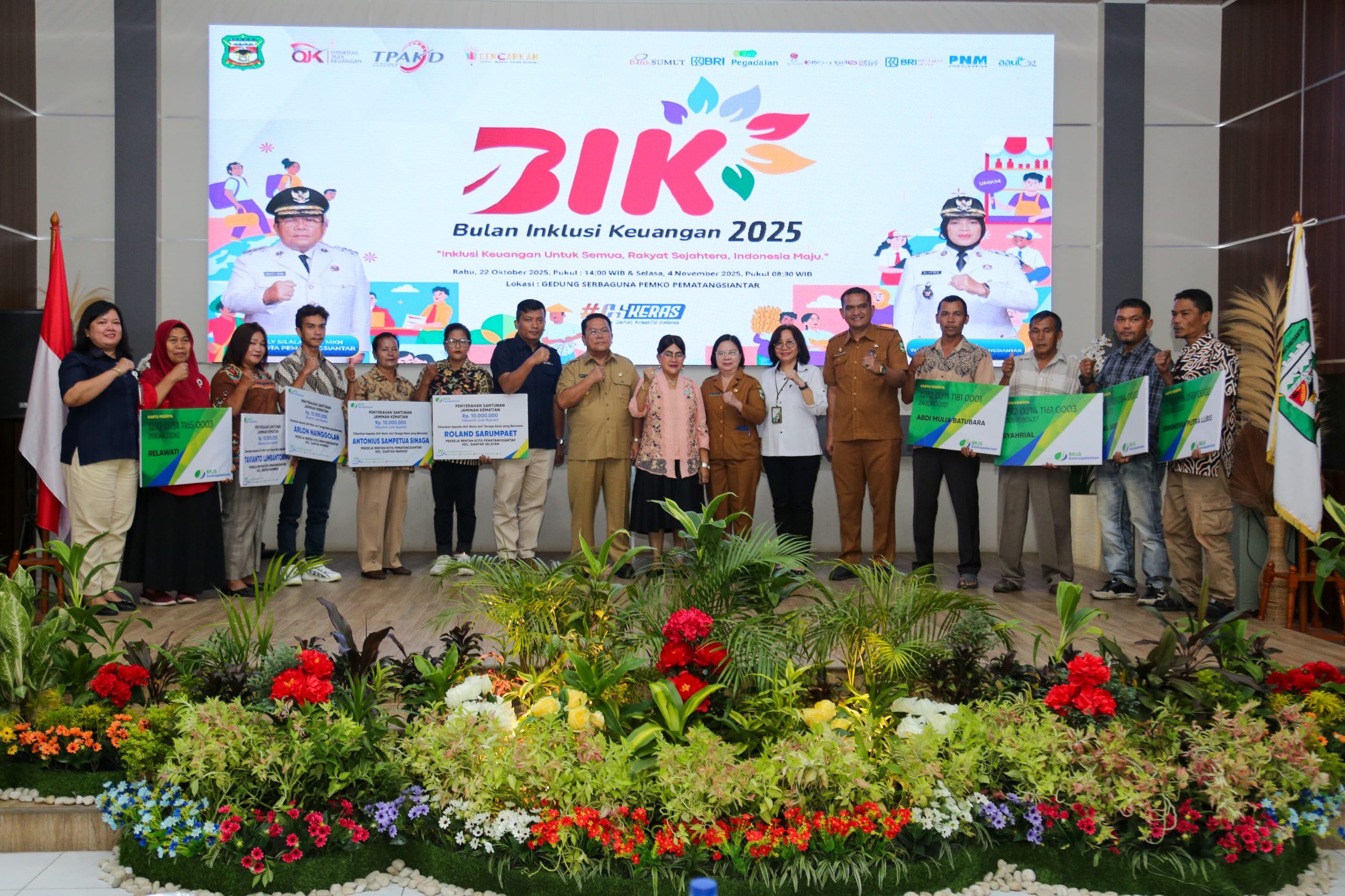 Pematangsiantar – Konstruktif.id | Wali Kota Pematangsiantar Wesly Silalahi SH MKn didampingi Ketua TP PKK Ny Liswati Wesly Silalahi dan pimpinan perbankan menyerahkan Kredit Usaha Rakyat (KUR) secara simbolis kepada para pelaku UMKM. Penyerahan KUR berlangsung di acara Puncak Bulan Inklusi Keuangan (BIK) Tahun 2025, di Gedung Serbaguna Pemko Pematangsiantar, Selasa (04/11/2025).