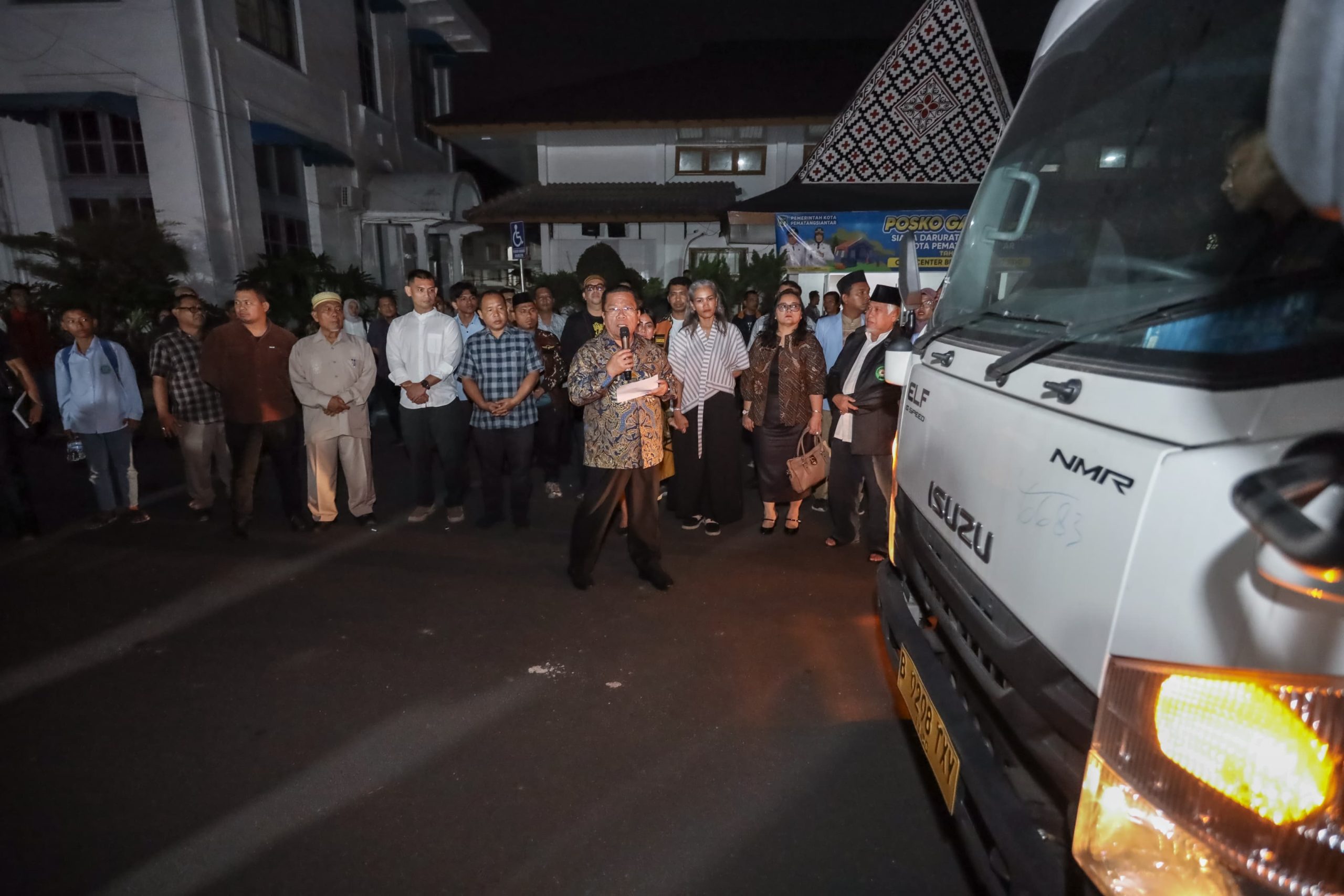 Wali Kota Pematangsiantar Wesly Silalahi SH MKn didampingi Ketua TP PKK Ny Liswati Wesly Silalahi dan Unsur Forkopimda memberangkatkan bantuan kemanusiaan dari Pemko Pematangsiatar ke Kota Sibolga dan Kabupaten Tapanuli Tengah yang terdampak bencana alam