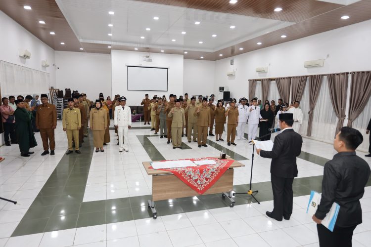 Pematangsiantar – Konstruktif.id | Wali Kota Pematangsiantar Wesly Silalahi SH MKn Diwakili Sekretaris Daerah (Sekda) Junaedi Antonius Sitanggang SSTP MSi melantik 51 Pejabat Administrator dan Pengawas di Lingkungan Pemerintah Kota (Pemko) Pematangsiantar. Pelantikan dilaksanakan di Ruang Serbaguna Pemko Pematangsiantar, Jumat (03/10/2025) sore.