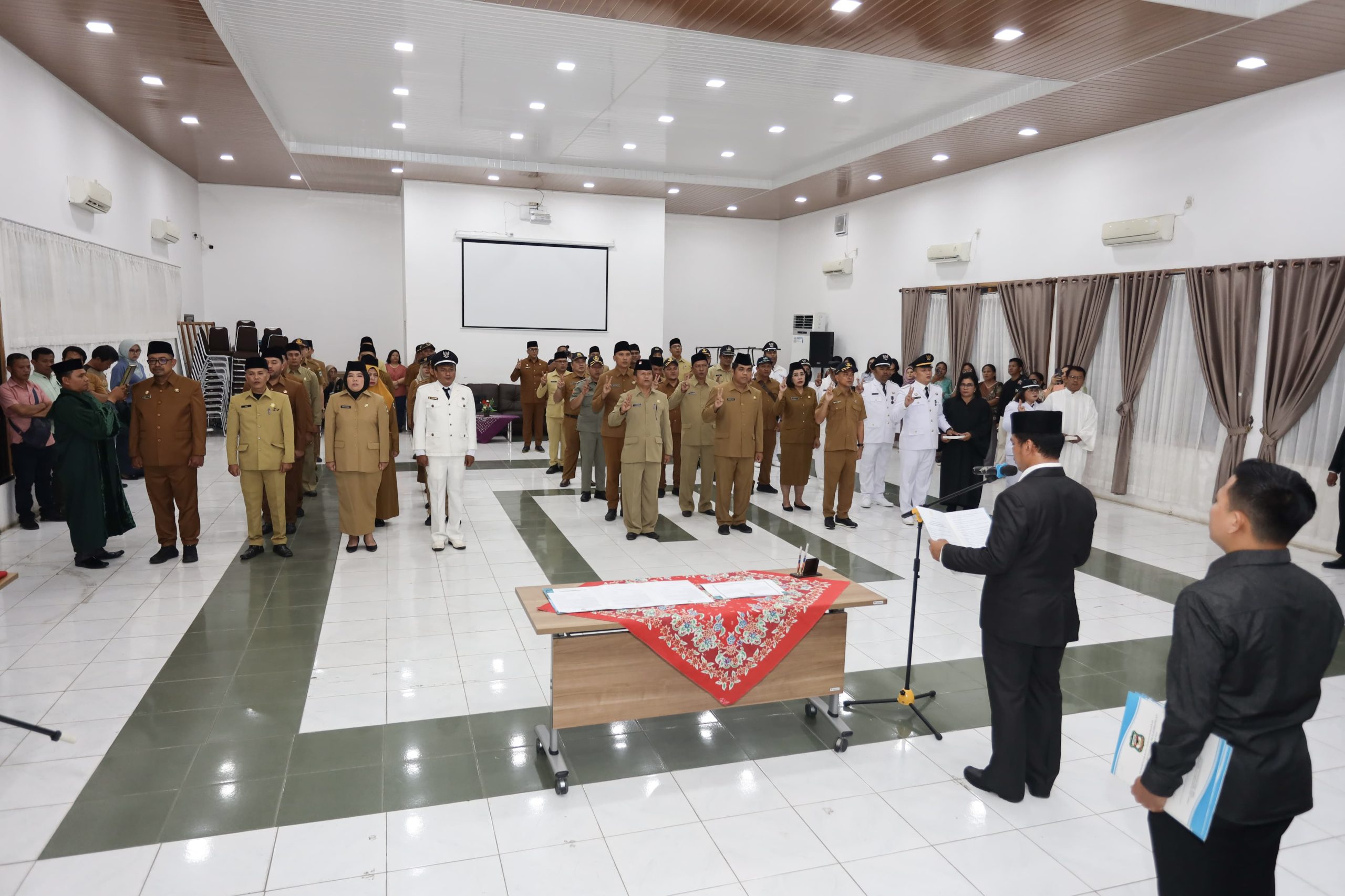 Wali Kota Pematangsiantar Wesly Silalahi SH MKn Diwakili Sekretaris Daerah (Sekda) Junaedi Antonius Sitanggang SSTP MSi melantik 51 Pejabat Administrator dan Pengawas di Lingkungan Pemerintah Kota (Pemko) Pematangsiantar