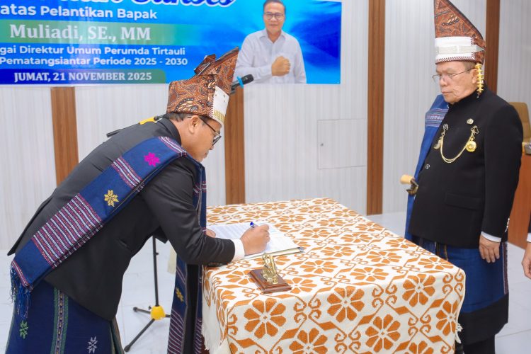 Pematangsiantar – Konstruktif.id | Wali Kota Pematangsiantar Wesly Silalahi SH MKn memimpin Pengambilan Sumpah/Janji Jabatan dan Penyerahan Surat Keputusan (SK) Wali Kota kepada Muliadi SE MM sebagai Direktur Umum Perumda Air Minum Tirta Uli Masa Jabatan 2025-2030. Pengambilan sumpah/janji dan penyerahan SK wali kota berlangsung di Ruang Rapat Kantor Perumda Air Minum Tirta Uli, Jalan Porsea Kelurahan Teladan Kecamatan Siantar Barat, Jumat (21/11/2025) pagi.